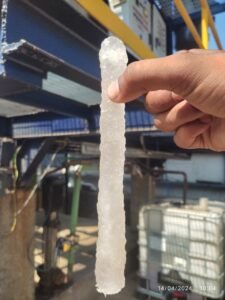 Due to this continuous operating mixer agitator, the salts do not get any opportunity to form flakes inside the reactor. Yet at the same time, the concentration and precipitation is taking place. This results in the concentrate to eventually become super saturated. Upon release of the concentrate outside the reactor, it releases heat to the atmosphere and starts crystallizing itself.
