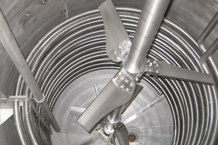 In our Vacuum MVR Evaporators, we have incorporated Reactor type working principle. It consists of an agitator Mixer with Spiral Coil Heat Exchanger submerged inside the reactor.