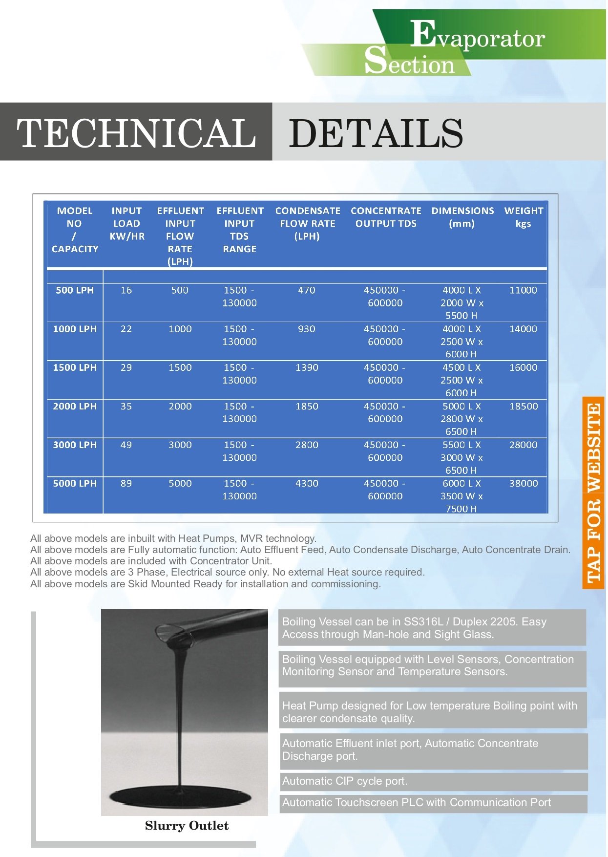 Lombar Industries Evaporators are capable of handling effluent of following input parameters
